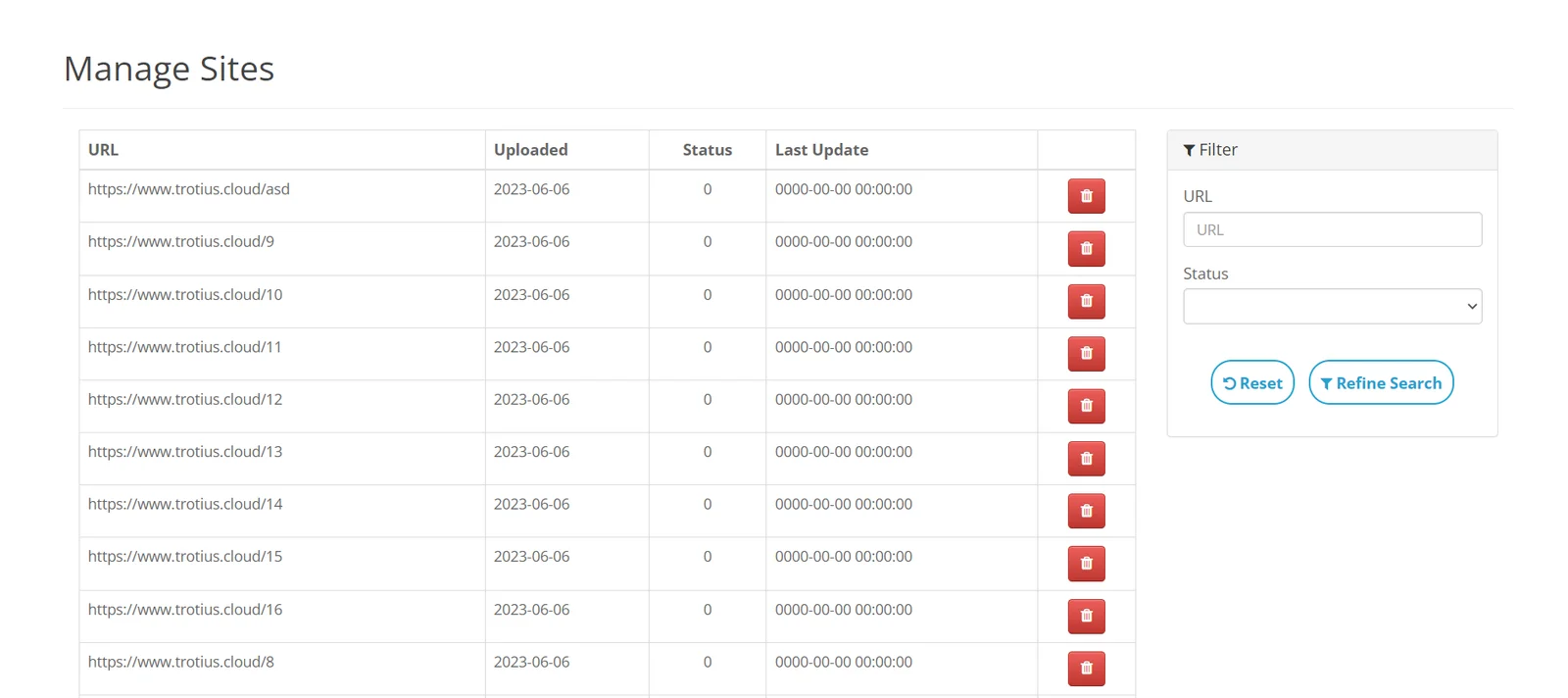 All URL sites can be manually added or easily updated by bulk via file upload and duplicates will be ignored.