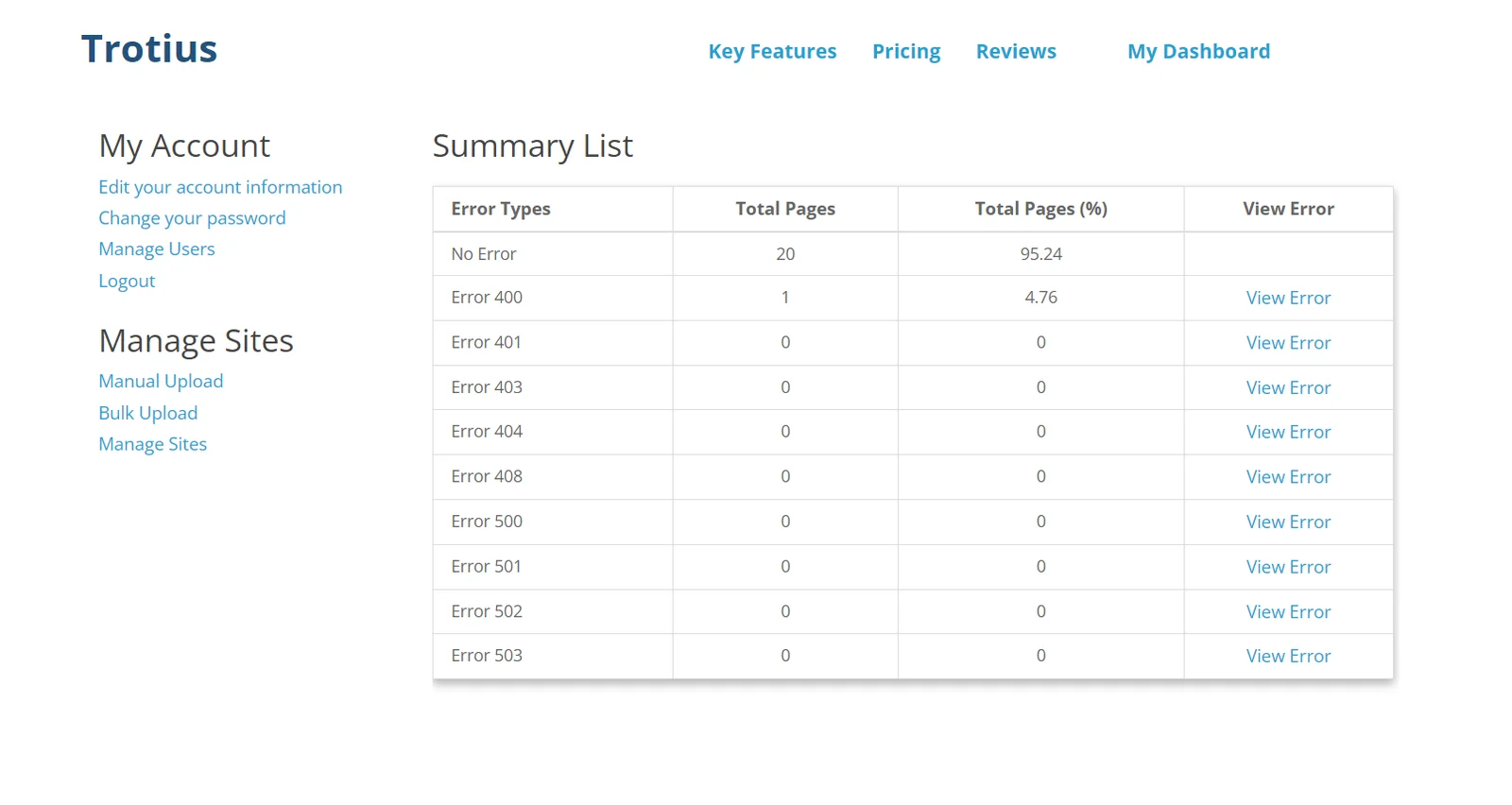Our AI constantly monitor all the URL sites provided 24/7 and provides the types of error detected.
